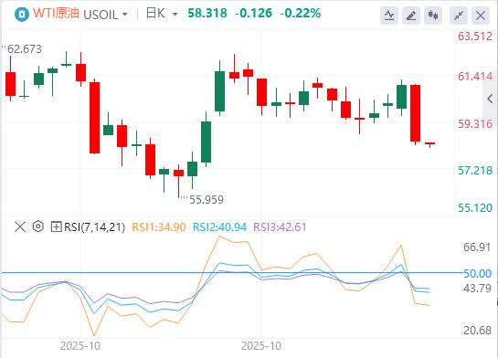 周四亚盘,原油交投58.31附近。油价周三下跌超4%,主要受累于OPEC发布报告预测全球石油供应将在2026年与需求持平,这标志着其预测进一步从供应短缺转向供需平衡。另一方面,分析师认为美国政府恢复运作可能提振消费者信心与经济活动,从而刺激原油需求。市场正密切关注美国能源信息署将于周四发布的展望报告,以寻求更多市场方向指引。