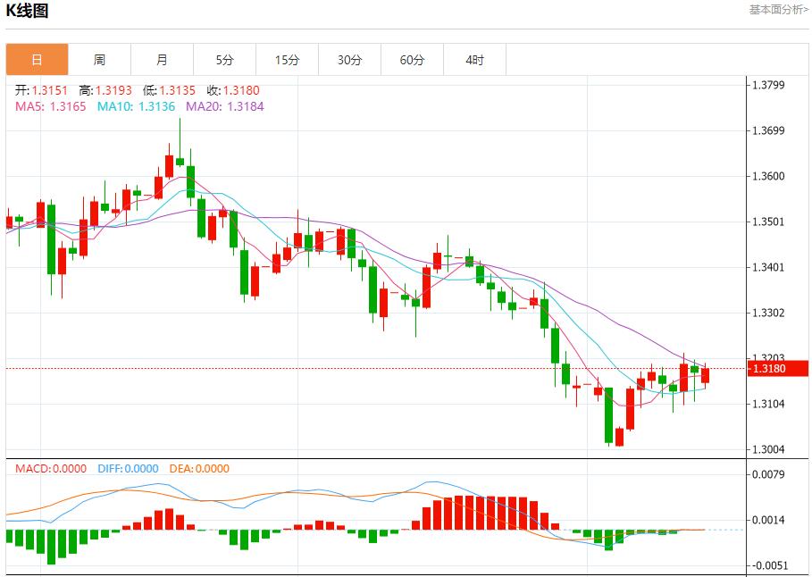 英镑/美元:截止北京时间21:20,英镑/美元上涨,现报1.3182,涨幅0.06%。纽市盘前,(GBPUSD)价格在最后一个交易日小幅下跌,原因是关键阻力稳定在1.3185,试图获得可能有助于其恢复和突破该阻力的看涨势头,同时继续以EMA50上方的交易为代表的动态支撑,加强了短期基础上的校正看涨波的强度,特别是其沿着趋势线交易。