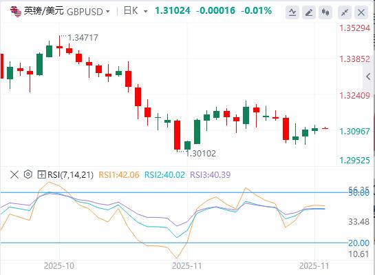 周二亚盘,原油交投58.73附近。市场对美联储可能于12月降息的预期提振了风险资产,同时投资者对俄罗斯能否顺利达成推动其石油出口的乌克兰和平协议持谨慎态度限制了油价的跌幅,市场正密切关注即将公布的美国经济数据,以及俄乌和谈的进一步进展,这些因素将继续主导短期油价走势。