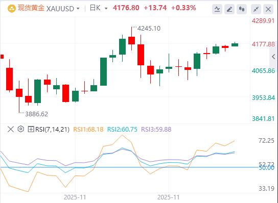 11月28日,北京时间周五亚市早盘,美元指数徘徊在99.58附近。周四,美元指数整体上先涨后跌,触及日内高点后抹去全部涨幅,最终收跌0.059%,报99.53。由于感恩节假期市场交投清淡,现货黄金横盘震荡,最终收跌0.14%,报4157.99美元/盎司,仍徘徊在近两周高点附近;现货白银连涨四日,最终收涨0.1%,报53.4美元/盎司。在交易员观望俄乌谈判走向以及展望本周末举行的欧佩克+会议之际,国际原油连续第二个交易日走高。WTI原油站上59关口,最终收涨0.96%,报59.03美元/桶;布伦特原油最终收涨0.77%,报62.89美元/桶。