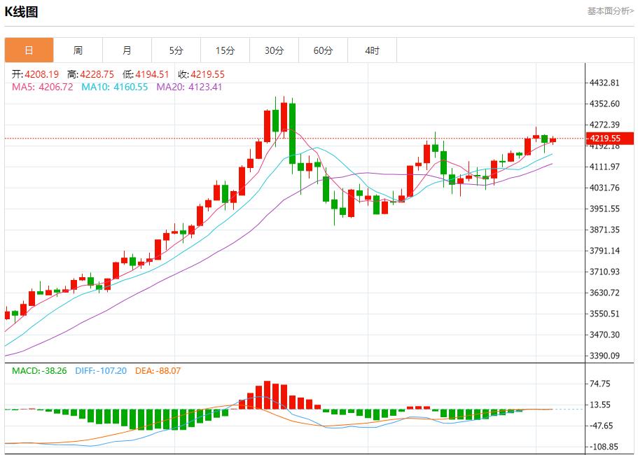 现货黄金:截止北京时间21:20,现货黄金上涨,现报4219.54,涨幅0.33%。纽市盘前,黄金在最新的盘中交易中下跌,因为在达到超买水平后,RSI指标上开始出现负面信号。与此同时,价格试图获得积极的动力,这可能有助于它突破4,225美元的关键和顽固的阻力水平,这是由50天SMA上方交易的持续动态力量支撑的,这加强了短期上升趋势的主导地位,特别是随着上升趋势线的移动。